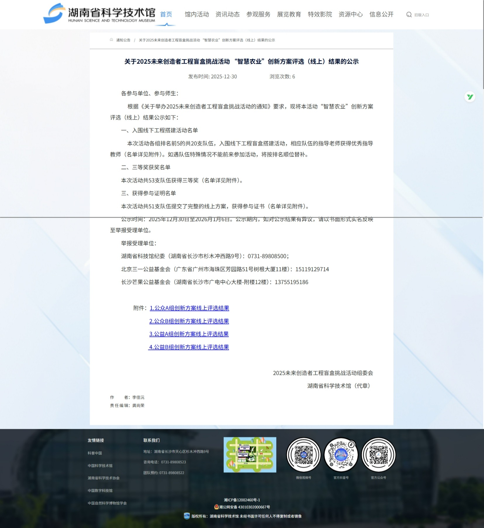 根据《关于举办2025未来创造者工程盲盒挑战活动的通知》要求,现将本活动“智慧农业”创新方案评选(线上)结果公示如下: