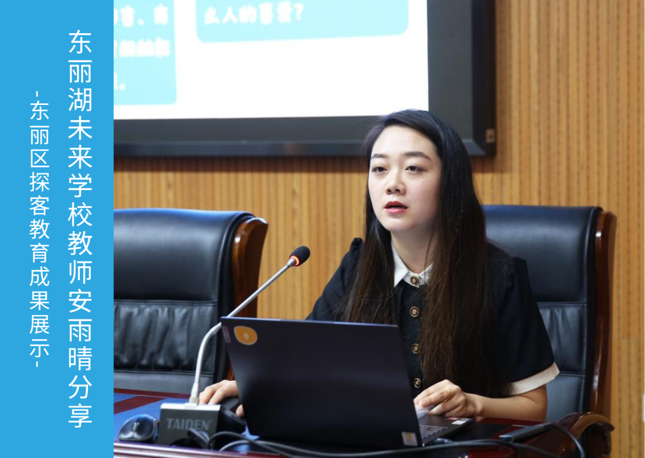 课例分享环节,东丽湖未来学校教师安雨晴以《巧舌如簧的商人》为例具体展示了一节调动学生沟通与表达素养的课程是如何实施的;