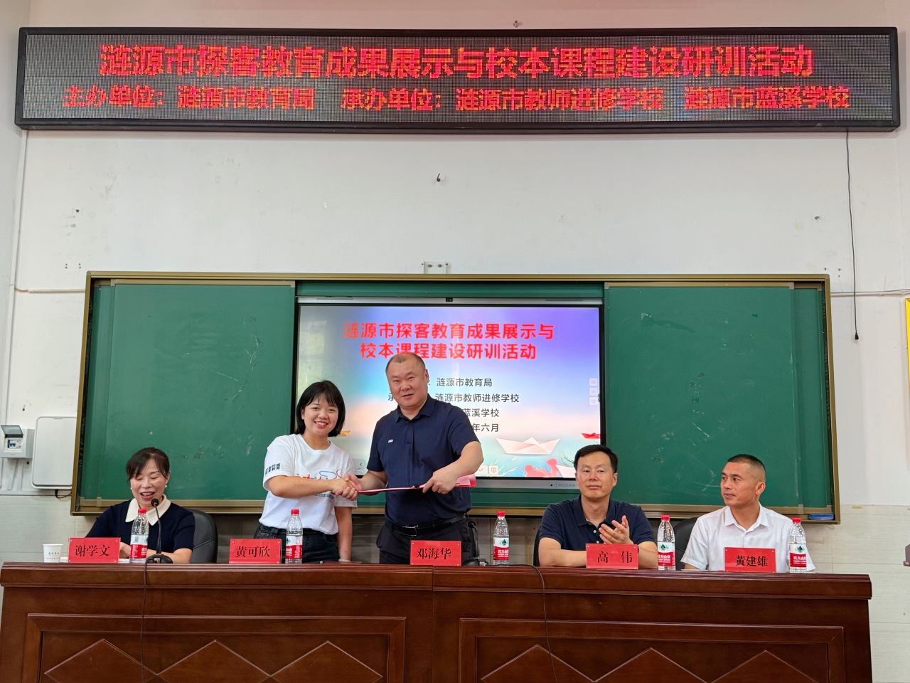 为进一步落实“在教育'双减’背景下做好科学'加法’”的指示精神,促进探客教育常态化实施与校际协作,推动涟源市学校校本课程多样化发展,更好地服务于学生核心素养的提升,2025年6月17日,涟源市探客教育成果展示暨校本课程建设研训活动在涟源市蓝溪学校举行。